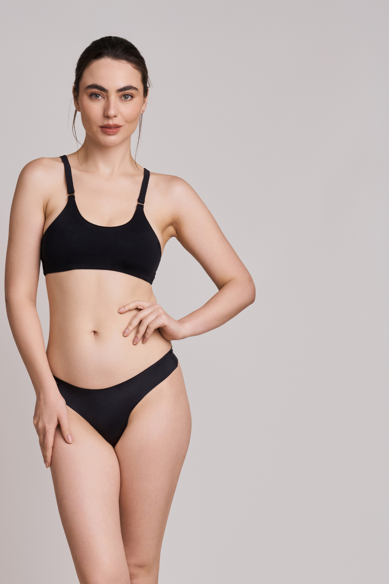 β Fixed, slightly wider straps for added comfort and coverage.